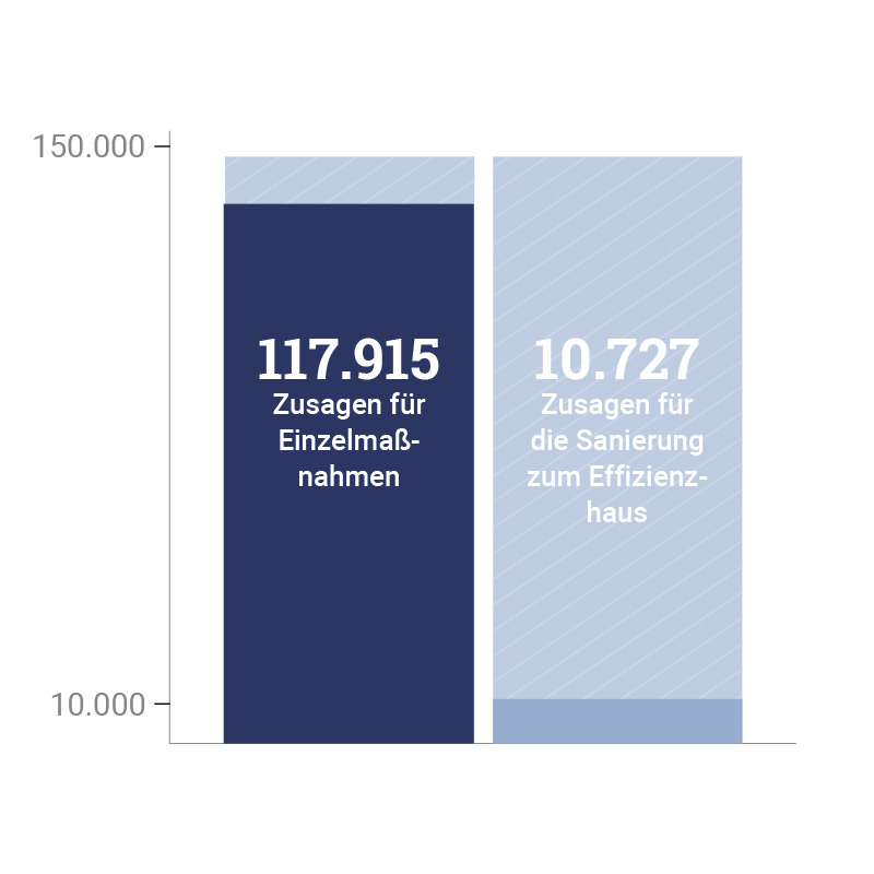 Der höchstmögliche Fördersatz beträgt 20 % (für Sanierungen zum Effizienzhaus-Standard 40). Stammen mindestens 55 % der genutzten Wärme aus erneuerbaren Energien (EE-Paket), erhöhen sich sämtliche Fördersätze um weitere 5 %. Die Förderung kann bei der KfW als Tilgungszuschuss im Rahmen eines Kredits beantragt werden. Förderfähig sind je Wohneinheit Vorhaben mit einem maximalen Kreditbetrag i. H. v. 120.000 €. Bei Sanierungen mit EE-Paket erhöht sich der Darlehensbetrag auf maximal 150.000 €.
