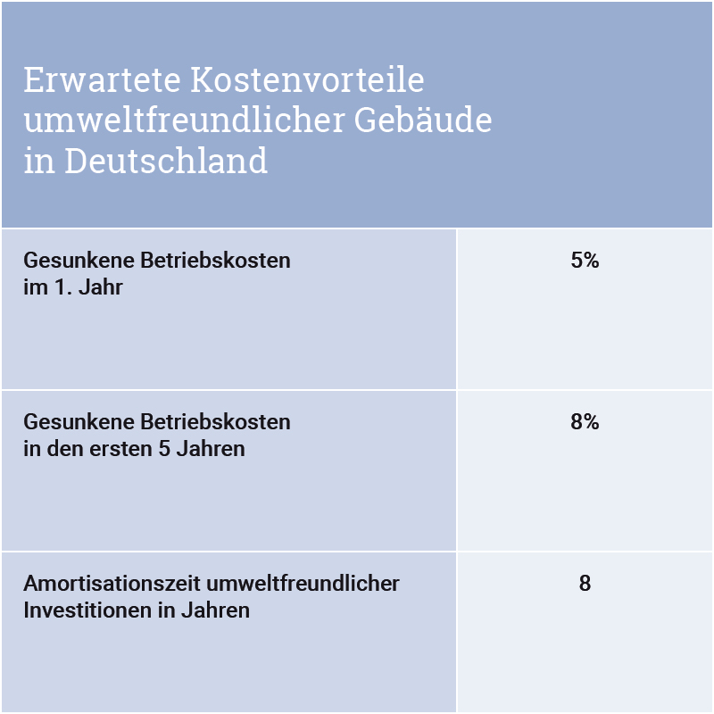 Die Investition in die Nachhaltigkeit muss sich rechnen: In der weltweiten Befragung im Rahmen der Green-Building-Studie erwarten die deutschen Bauexperten einen Return on Investment (ROI) ihrer Nachhaltigkeitsmaßnahmen innerhalb von acht Jahren, für die nachhaltige Sanierung eines Bestandsgebäudes sogar innerhalb von sieben Jahren. Das kann sich auch aus einem anderen Grund auszahlen: Künftig werden Nachhaltigkeitszertifikate für den Verkauf (und den Erwerb) einer Immobilie schlicht vorausgesetzt. Wer die Nachhaltigkeit seiner "vier Wände" nicht nachweisen kann, bleibt künftig darauf sitzen.