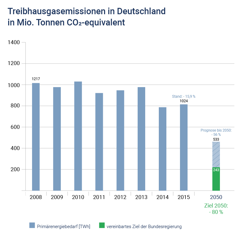 Letztlich zahlt nachhaltiges Bauen auf die Klimaziele ein, welche die Bundesregierung in ihrem Klimaschutzplan 2050 festgeschrieben hat. Denn ein Drittel aller Kohlendioxidemissionen fallen in Deutschland im Gebäudesektor an. Allerdings wird das definierte Emissionsziel von maximal 248 Millionen Tonnen CO2 im Jahr 2050 bei einem "Weiter-So-Kurs" derzeit klar verfehlt – um 56 Prozent. Nach Analysen des aktuellen Sonderberichts des Weltklimarats ist das Ziel, die Erderwärmung auf 1,5 Grad Celsius gegenüber der vorindustriellen Zeit zu begrenzen, kaum noch zu halten und eher mit einem Anstieg von über zwei Grad zu rechnen. Das hat Folgen für die Natur: Der Arktische Ozean würde einmal pro Jahrzehnt frei von Meereis sein, die Korallen würden verschwinden und die Folgen irreversibel sein, warnen die Wissenschaftler.