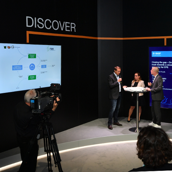 Den Kreislauf von EPS innerhalb der nächsten Jahre vollständig zu schließen, ist derzeit eines der obersten Ziele von Herstellern und Lieferanten. Bereits jetzt wird bei der Betrachtung des gesamten Lebenszyklus von expandiertem Polystyrol klar, dass sich EPS auf einem guten Weg befindet und die Branchenteilnehmer schon viel erreichen konnten. Ließe sich der Dämmstoff nach Ablauf der Nutzungsphase noch vollständig recyceln, wäre der Kreislauf lückenlos – und damit äußerst nachhaltig. Doch was ist der aktuelle Stand und welche Probleme gilt es noch zu lösen, bevor dieser Schritt gängige Praxis werden kann? Das war das Thema des vom FSDE mit organisierten Live Talks "Closing the Gap - On the Track Towards a Circular Economy for EPS" am Eröffnungstag der Messe. Als Teilnehmer der Diskussion hatte das FSDE Eike Messow, Leiter Shared Services & Nachhaltigkeit bei der Sto SE & Co. KGaA, und Nicole Kambeck, Umweltspezialistin für die Geschäftseinheit Styrolschaumstoffe der BASF, eingeladen.